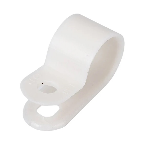 Скоба представляет собой нейлоновую петлю с двумя отверстиями на концах, предназначенными для крепления к поверхности. Благодаря своей форме данный вид крепежа также называют «серьгой» или «клипсой».