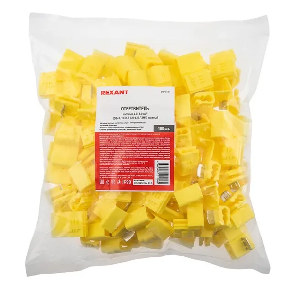 Ответвитель 4.0-6.0 мм? желтый REXANT предназначен для ответвления электроэнергии от токонесущего провода с последующей подачей питания на дополнительное электрооборудование. Такой, применяемый в электрике и радиоэлектронике, ответвитель представляет собой пластиковый корпус, внутри которого расположен контактный нож.