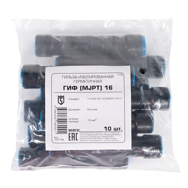 Гильза КВТ изолированная герметичная ГИФ (MJPT) предназначена для надежного соединения фазных магистральных проводов СИП. Обеспечивает прочное электрическое соединение с защитой от влаги и внешних воздействий благодаря герметичной изоляции. Идеально подходит для использования в наружных и внутренних электрических сетях, обеспечивая долговечность и безопасность соединений.