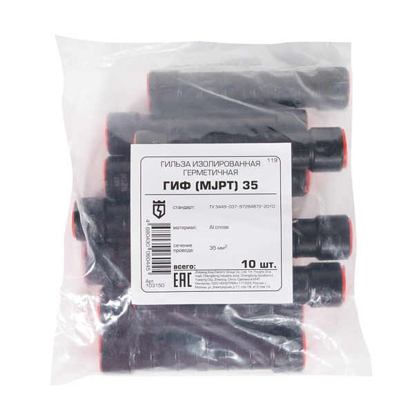 Гильза КВТ изолированная герметичная ГИФ (MJPT) предназначена для надежного соединения фазных магистральных проводов СИП. Обеспечивает прочное электрическое соединение с защитой от влаги и внешних воздействий благодаря герметичной изоляции. Идеально подходит для использования в наружных и внутренних электрических сетях, обеспечивая долговечность и безопасность соединений.