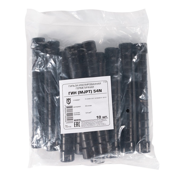 Гильза КВТ изолированная герметичная ГИН (MJPT) предназначена для надежного соединения несущей нейтрали линий СИП. Обеспечивает герметичную защиту от влаги и внешних воздействий, что гарантирует долговечность и стабильность электрических соединений в наружных воздушных линиях электропередачи.