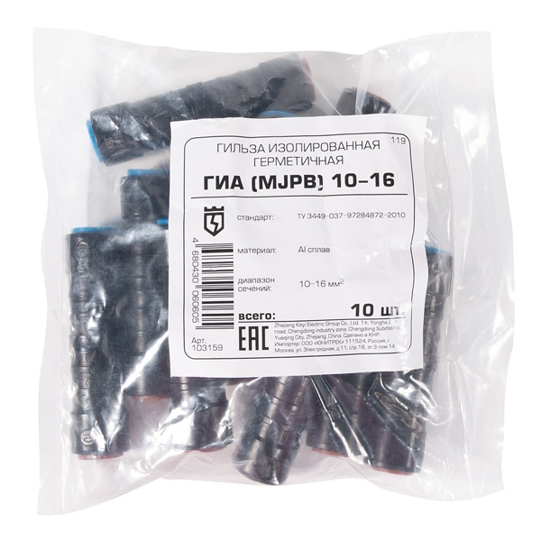 Гильза соединительная КВТ изолированная герметичная ГИА для ответвлений абонентских линий СИП, сечением 10-16 мм2 103159