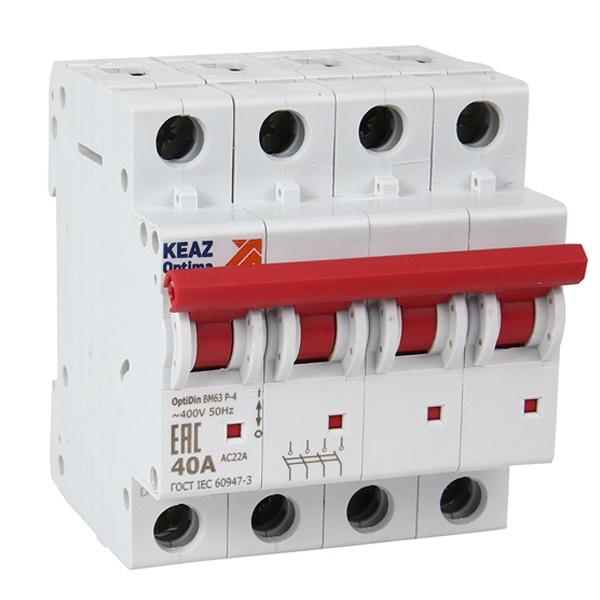 Четырехполюсный, модульный рубильник КЭАЗ OptiDin BM63P номинальным током 40 Ампер 103897
