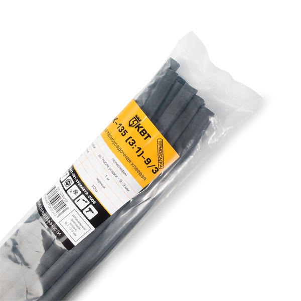 Трубка термоусадочная КВТ клеевая ТТК-135 (3:1)-9/3 мм черная