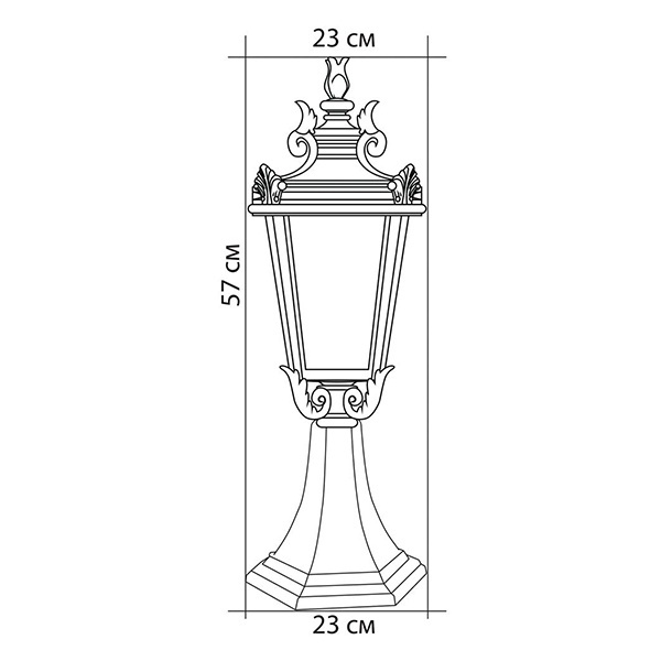 Форма – цилиндрический фонарь, четырехгранное основание.