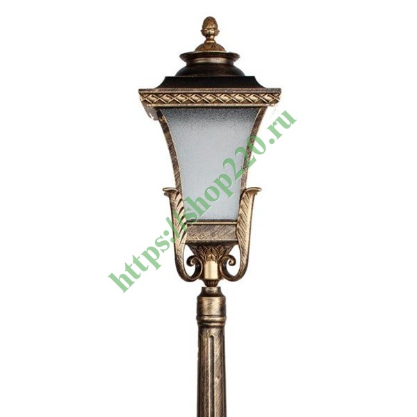 Описание: Конструкция состоит из двух основных элементов – четырехгранного фонаря и вертикальной опоры. Цвет – черное золото. Рассеиватель фонаря – матовое стекло.