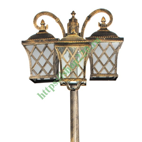 Фонарь для улицы модели PL4069 3*E27 серии «Тартан» предназначается для освещения скверов, садовых дорожек и парковых пешеходных зон, а также приусадебных участков загородных домов. Конструкция осветительного устройства состоит из металлического декоративного столба с тремя изогнутыми в виде дуг консолями, к которым подвешены 3 четырехгранных плафона. Для работы светильника потребуются светодиодные или энергосберегающие лампы с цоколями Е27.
