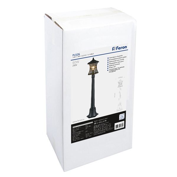 Светильник садово-парковый, серии «Мадрид», (НТУ) FERON PL526 60W, E27, 230V, IP44, цвет черный, цилиндр, столб, 200*200*1022мм