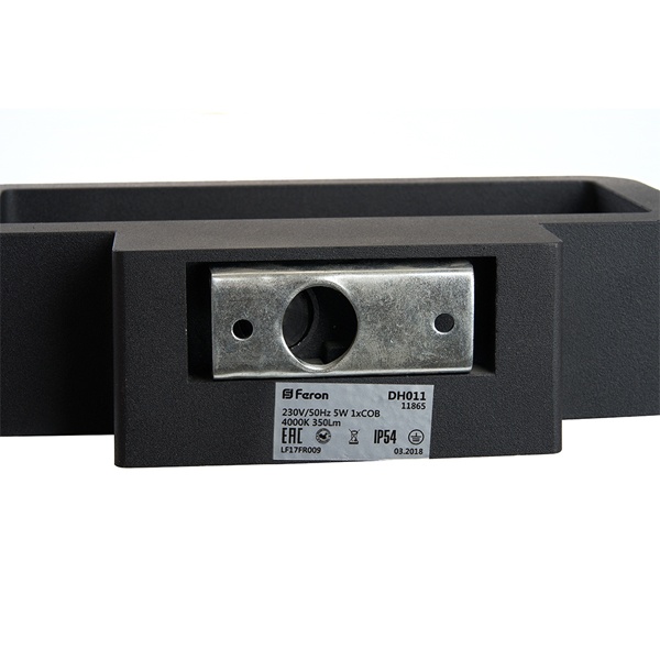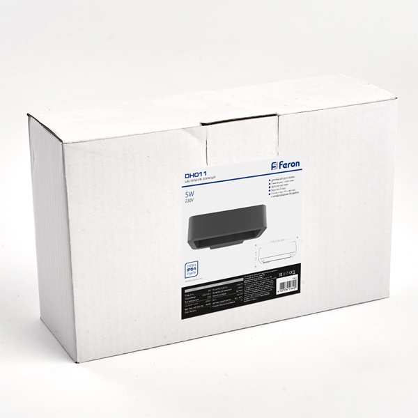 Светильник уличный светодиодный, на стену (ДБУ) FERON DH011, 5W, 4000К (белый натуральный), 230V/50Гц, 350Lm, IP54, 1LED*COB, класс защиты 1, раб.t -40C...+40C, цвет черный, корпус алюминий, 220*130*55мм,