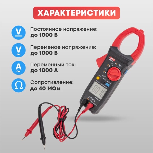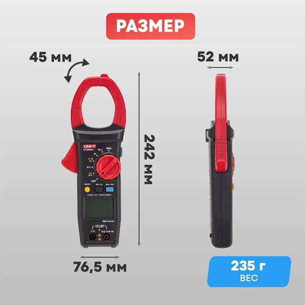 Цифровые токоизмерительные клещи UNI-T UT205A+ — обновлённая версия модели UT205, предназначенная для точного и безопасного измерения электрических параметров.