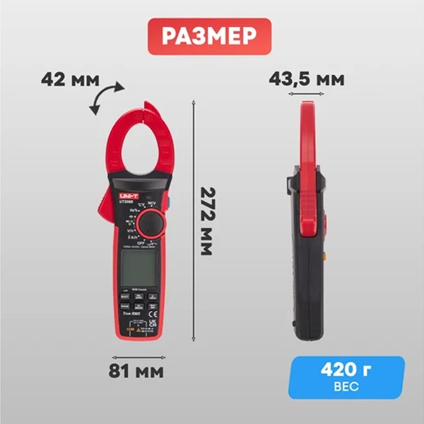 Цифровые токоизмерительные клещи UNI-T UT208B TRUE RMS — обновлённая версия модели UT208, разработанная для точных и безопасных измерений в профессиональной сфере.