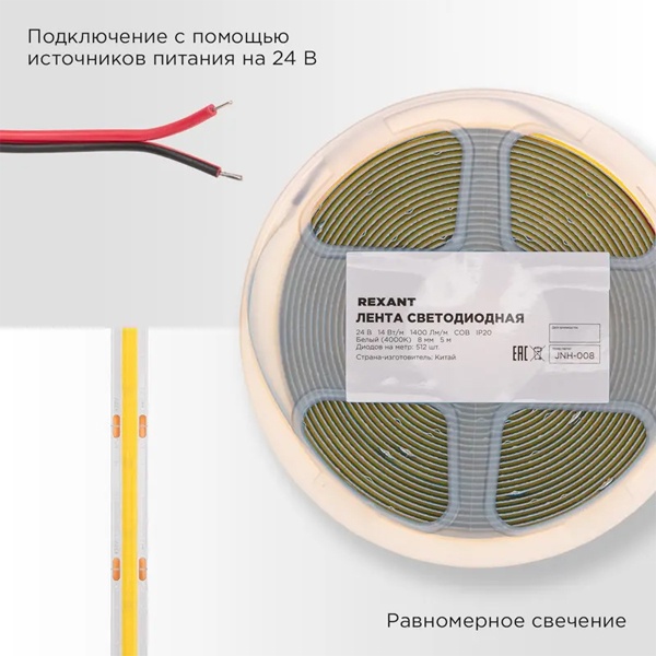 Главные преимущества COB-лент — это долговечность, надежность, улучшенный теплоотвод, гибкость и равномерное свечение без видимых точек и потери яркости. Благодаря этим свойствам, лента может использоваться без дополнительного рассеивателя и профиля.