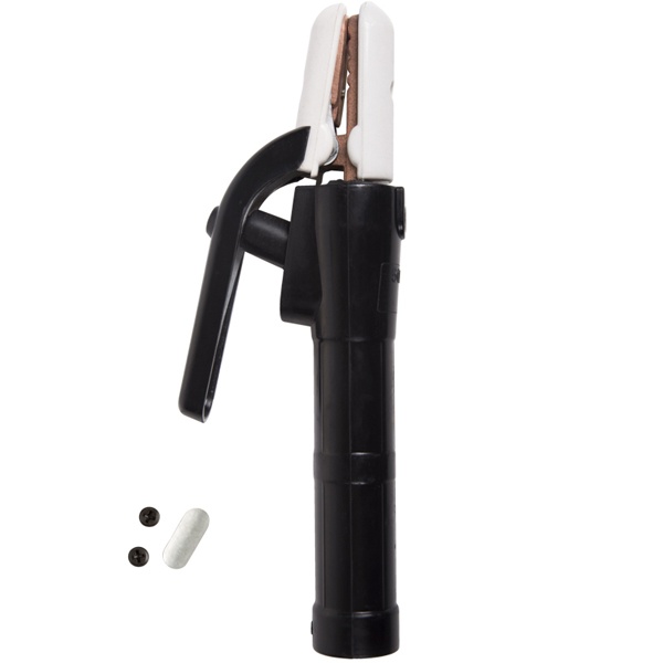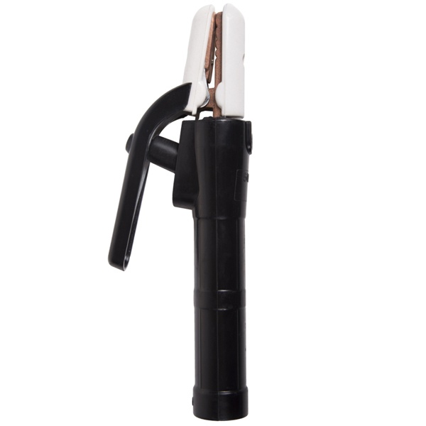 Ручка держателя выполнена из прочного термостойкого пластика с высокими диэлектрическими свойствами, устойчивого к механическим повреждениям и воздействию высоких температур. Эргономичная форма обеспечивает комфортный хват и дополнительную защиту сварщика во время работы.