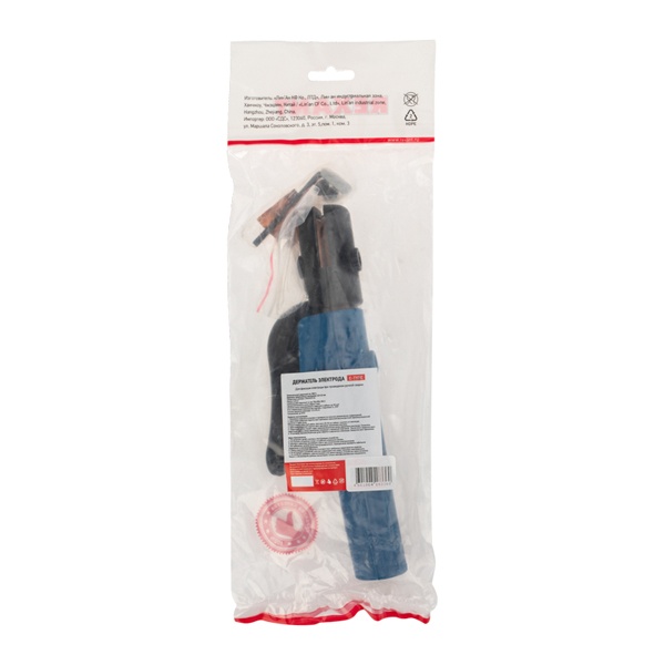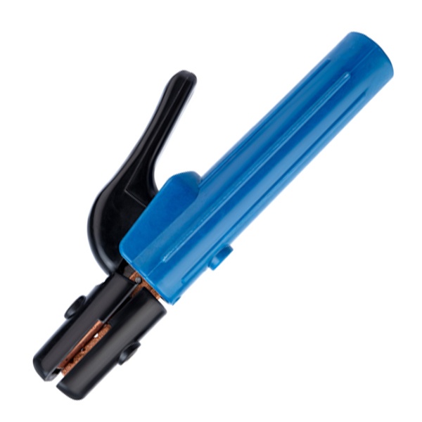 Ручка держателя выполнена из прочного термостойкого пластика с высокими диэлектрическими свойствами, устойчивого к механическим повреждениям и воздействию высоких температур. Эргономичная форма обеспечивает комфортный хват и дополнительную защиту сварщика во время работы.