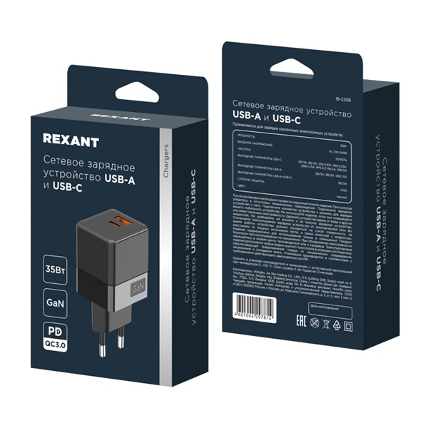 Сетевое зарядное устройство REXANT мощностью 35 Вт обеспечивает быструю и эффективную зарядку широкого спектра электронных устройств благодаря поддержке технологий Power Delivery 3.0 и Quick Charge 3.0.