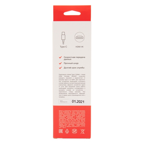Переходник REXANT с разъёмом Type-C (штекер) на HDMI (гнездо) предназначен для передачи аудио- и видеосигнала с устройств, оснащённых портом USB Type-C, на внешние экраны и проекторы через интерфейс HDMI. Он идеально подходит для подключения смартфонов, планшетов, ноутбуков и других совместимых гаджетов к телевизорам, мониторам и проекторам, обеспечивая чёткое изображение и качественный звук.