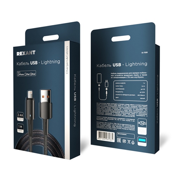 Кабель предназначен для зарядки мобильных устройств и их синхронизации с персональными компьютерами или ноутбуками. С одной стороны расположен стандартный разъём USB-A, с другой — разъём Lightning, совместимый с продукцией Apple.