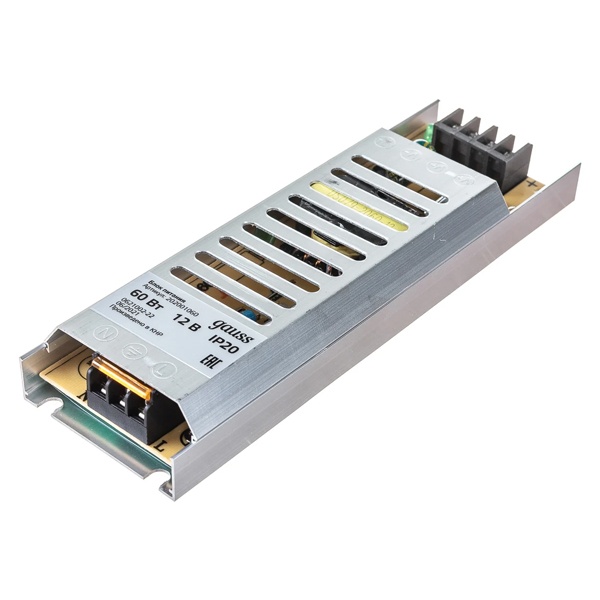 Блок питания для светодиодной ленты Black 60Вт 12В IP20 (драйвер) GAUSS 202001060