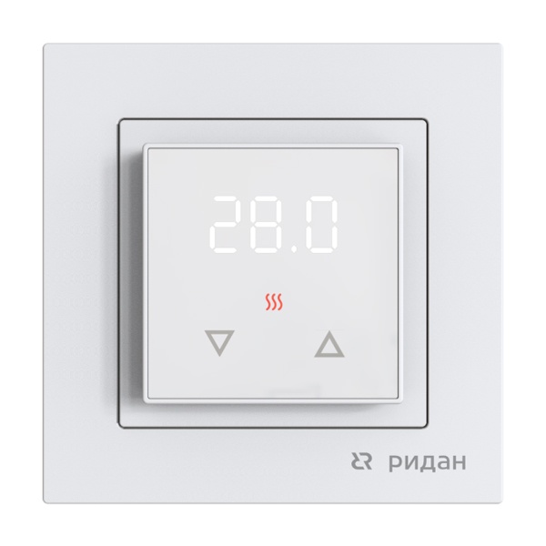 Электронный терморегулятор с интегрированным датчиком температуры воздуха и выносным датчиком температуры пола, предназначенный для управления электрическими системами теплого пола и основного отопления помещений.