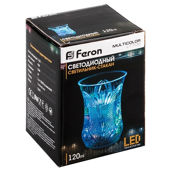 Светильник светодиодный стакан Ферон LT708 c RGB подсветкой 26984 Светильник работает только при наличии в нем жидкости.