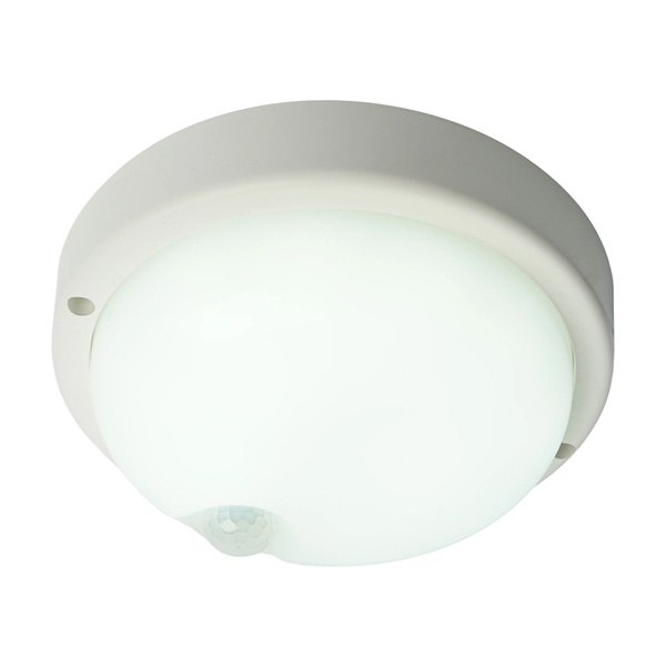 Угол обнаружения: 120° Расстояние обнаружения: 6м (при температуре воздуха не более 25°С) Преимущества: Рассеиватель из матового светотехнического пластика предотвращает слепящий эффект от светильника, а также обеспечивает широкий угол рассеивания света Драйвер нового поколения с высоким КПД Долговечный силиконовый уплотнитель Удобный и простой монтаж В комплект входят все необходимые крепежи Характеристики: Мощность: 12 Вт Напряжение: 220-240 В Световой поток: 960 Лм Цветовая температура: 6500 К Время задержки выключения: 30 с Пороговая освещенность: 20 Лк (Датчик освещенности срабатывает при значение меньше 20 люксов) Материал рассеивателя: пластик PC Материал корпуса: пластик ABS Степень защиты: IP65 Цвет корпуса: белый Размер DxH: 140x50 мм Описание от производителя: