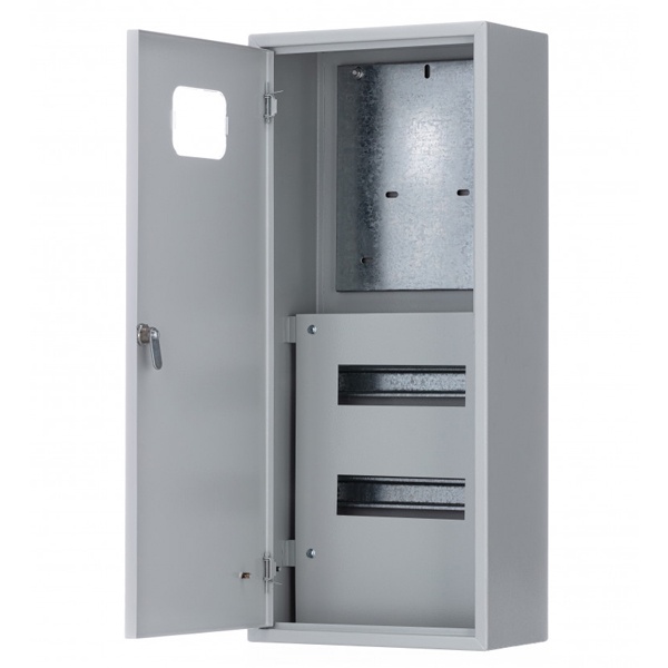 Шкаф учета ЩРУН накладного монтажа из металла для установки трехфазного счетчика, 18 модулей с окошком и замком, Декрафт 30408DEK