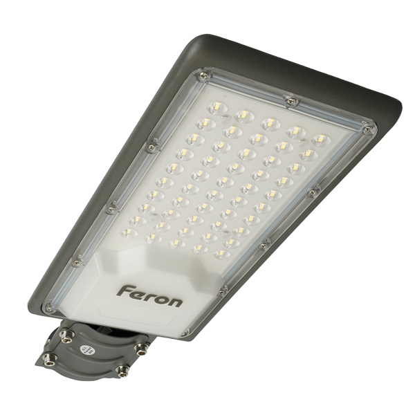 Уличный светильник консольный светодиодный, на столб (ДКУ) FERON SP3032, 50W, 6400К (холодный белый), 190-250V/50Гц, 5000Lm, IP65, угол рассеивания 120, 50LED*SMD3030, класс защиты 1, раб.t -60C - +45C, цвет серый, корпус алюминий, 355*155*57мм,