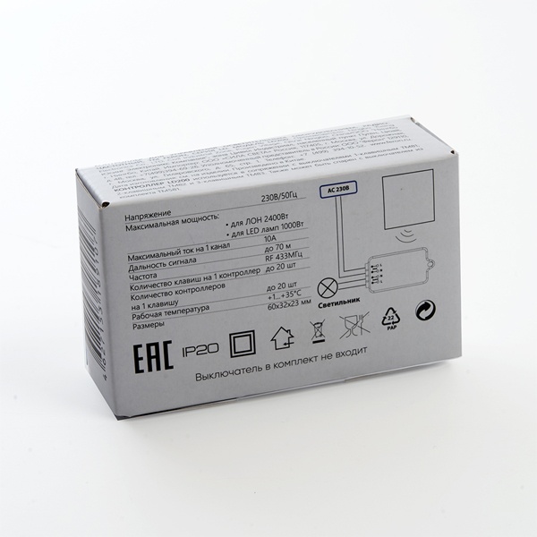 Компактный радиочастотный приемник контроллер Ферон LD200 мощностью до 2000 Ватт 41132 Беспроводной контроллер для управления освещением или электроприборами. Работает с радиовыключателями ТМ81, ТМ82, ТМ83(приобретаются отдельно)