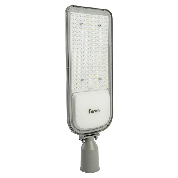Уличный светильник консольный светодиодный, на столб (ДКУ) FERON SP3050, 150W, 5000К (дневной), 85-265V/50Гц, 18000Lm, IP65, угол рассеивания 120, 200LED*SMD2835, класс защиты 1, раб.t -60C - +45C, цвет серый, корпус алюминий, 530*265*65мм,