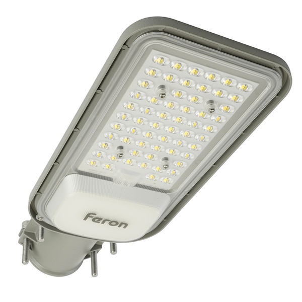 Уличный пылевлагозащищеный консольный LED светильник Ферон модели SP3040 мощностью 50 Ватт в сером алюминиевом корпусе, с дневным светом. 41548 Светильник консольный ТМ «FERON» со светодиодными источниками света предназначены для освещения дорог с малой или средней пропускной способностью, городских улиц, площадей, парков, парковок, придомовых территорий.