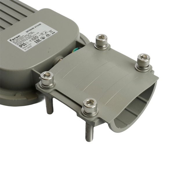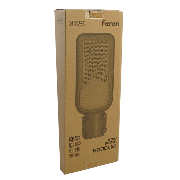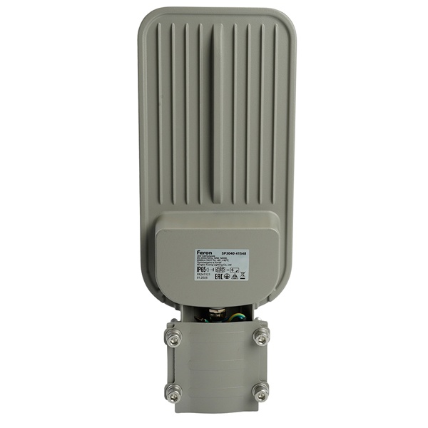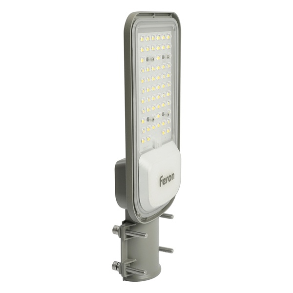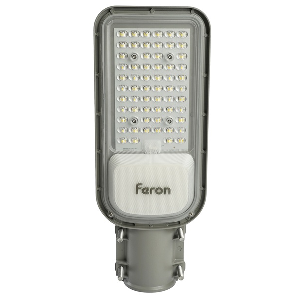 Уличный светильник консольный светодиодный, на столб (ДКУ) FERON SP3040, 50W, 5000К (дневной), 85-265V/50Гц, 6000Lm, IP65, угол рассеивания 120,*SMD2835, класс защиты 1, раб.t -60C - +45C, цвет серый, корпус алюминий, 370*145*45мм,