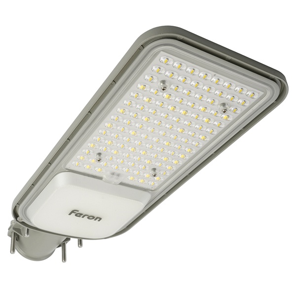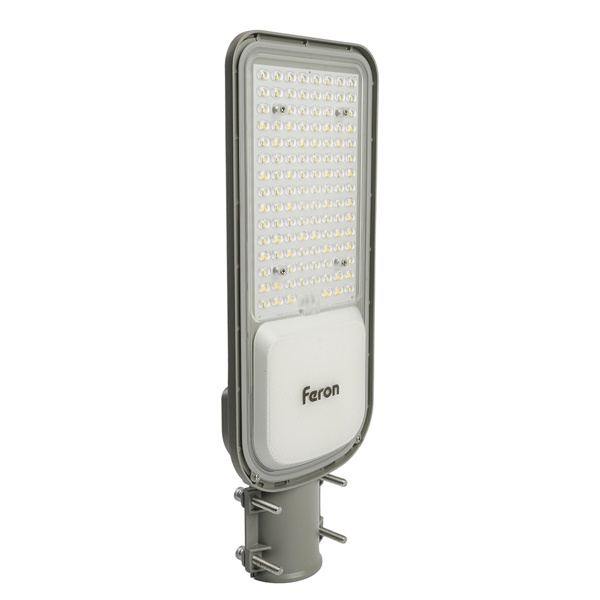 Уличный светильник консольный светодиодный, на столб (ДКУ) FERON SP3040, 100W, 5000К (дневной), 85-265V/50Гц, 12000Lm, IP65, угол рассеивания 120,*SMD2835, класс защиты 1, раб.t -60C - +45C, цвет серый, корпус алюминий, 455*180*49мм,
