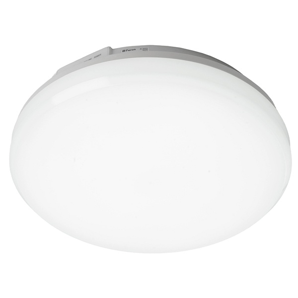 Белый влагозащищенный круглый светодиодный светильник Ферон мощностью 18Вт холодного света с блоком аварийного питания 3ч, серии AL3025 48296 Светодиодный светильник торговой марки Ферон с блоком аварийного питания предназначен для организации эвакуационного освещения промышленных, коммерческих и прочих объектов с повышенной степенью влажности и запыленности. Работает как в штатном режиме, так и при аварийном отключении сетевого питания.
