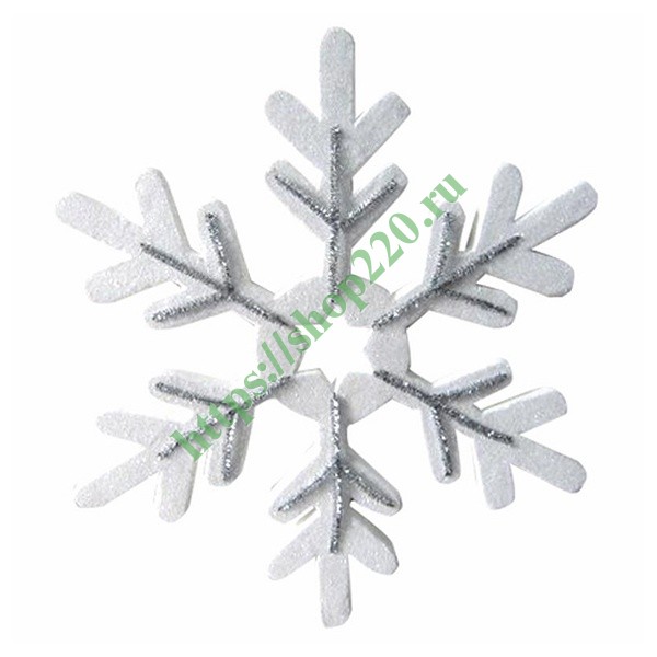 Декоративная новогодняя фигура "Снежинка сказочная" изготовлена в виде резной снежинки с шестью лучами. Поверхность фигурки покрыта блестками, имитирующими мельчайшие льдинки. Свет, падающий на поверхность данной фигуры, отражается, многократно преломляясь и создавая красивый эффект мерцания.