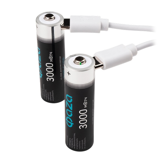 • Аккумулятор литиевый Фаzа AA 1.5В Li-Ion 3000мА.ч зарядка от Type-C, шнур в комплекте (упаковка 4шт)