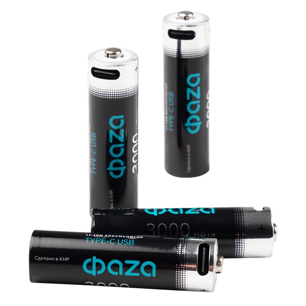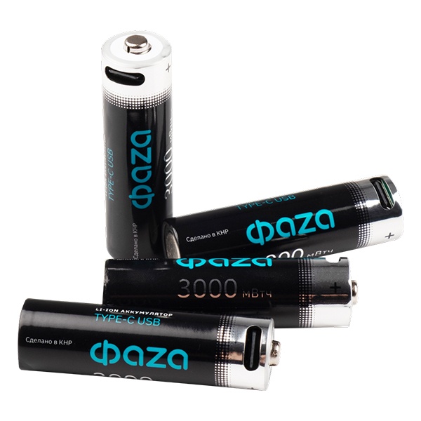 Аккумулятор литиевый Фаzа AA 1.5В Li-Ion 3000мА.ч зарядка от Type-C, шнур в комплекте (упаковка 4шт)