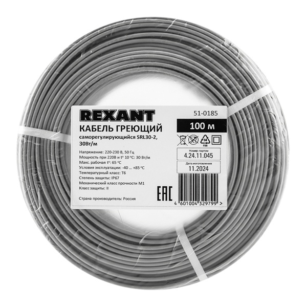 Пищевой греющий кабель REXANT 30 Вт/м предназначен для защиты от замерзания трубопроводов среднего диаметра, водосчётчиков, вентилей и других элементов водоснабжения в быту. Благодаря саморегулирующейся технологии, кабель автоматически изменяет уровень теплоотдачи в зависимости от температуры окружающей среды, обеспечивая эффективную и экономичную работу.