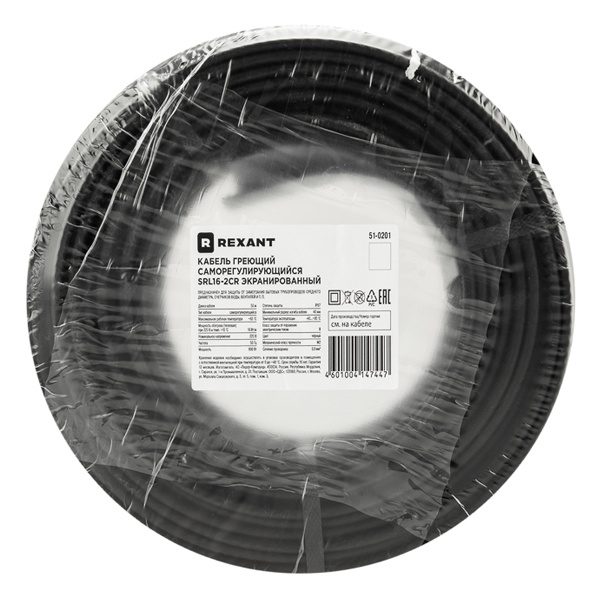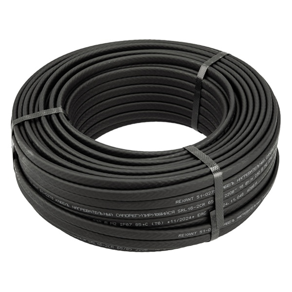 Саморегулирующийся нагревательный кабель REXANT мощностью 16 Вт на метр, длина бухты 50 метров 51-0201