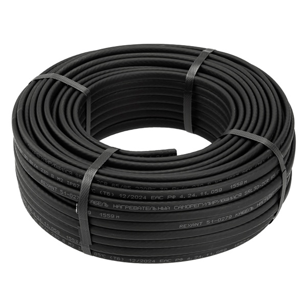 Саморегулирующийся нагревательный кабель REXANT мощностью 30 Вт на метр, длина бухты 50 метров 51-0203