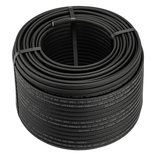 Саморегулирующийся нагревательный кабель REXANT мощностью 24 Вт на метр, длина бухты 100 метров 51-0205