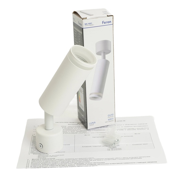 Накладной, поворотный, ламповый светильник акцентного освещения, под 1 лампу с цоколем GU10 мощностью до 35 Ватт, цвет белый 51370