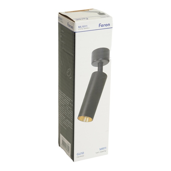 Накладной, поворотный, ламповый светильник акцентного освещения, под 1 лампу с цоколем GU10 мощностью до 35 Ватт, цвет черный/золото 51381