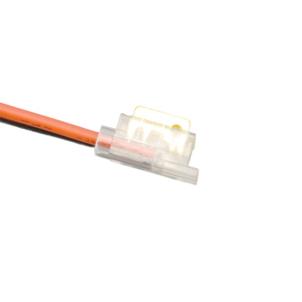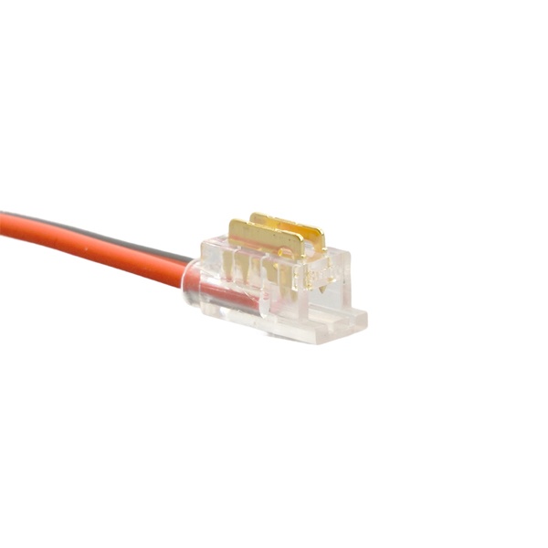 Элемент подключения LD160 от компании Feron применяется для соединения отрезка COB-ленты с сетевым адаптером питания. Данный соединитель обеспечивает быстрый и надежный монтаж без необходимости пайки, гарантируя стабильную подачу напряжения на ленту и удобство при установке.