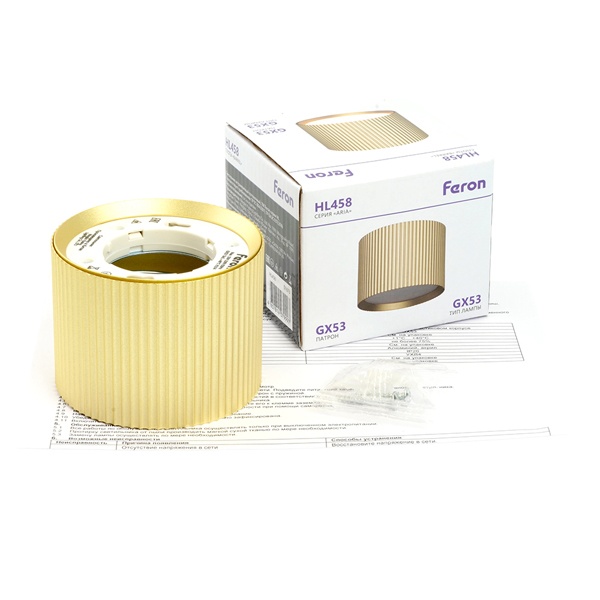 Накладной ламповый алюминиевый светильник Feron Aria, под лампу с цоколем GX53 максимальной мощностью 12 Ватт, цвет золото 51673