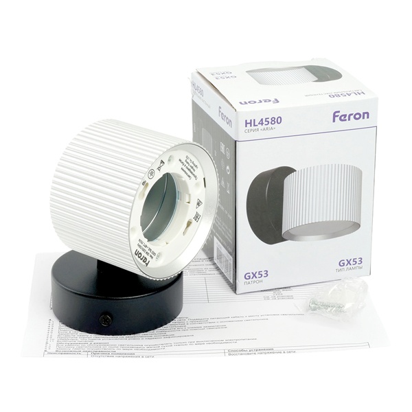 Накладной настенный ламповый алюминиевый светильник Feron Aria, под лампу с цоколем GX53 максимальной мощностью 12 Ватт, цвет серебро/черный 51676