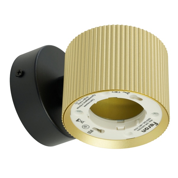Накладной настенный ламповый алюминиевый светильник Feron Aria, под лампу с цоколем GX53 максимальной мощностью 12 Ватт, цвет золото/черный 51677