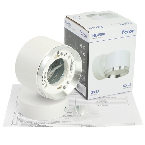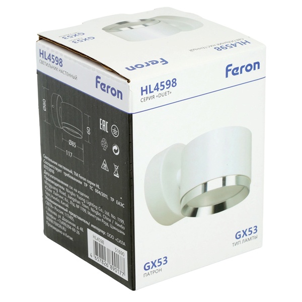 Накладной настенный ламповый алюминиевый светильник Feron DUET, под лампу с цоколем GX53 максимальной мощностью 12 Ватт, цвет белый/хром 51690