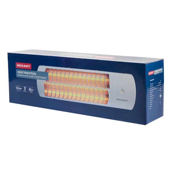 Инфракрасный обогреватель электрический мощностью 1,5кВт с кварцевыми трубками, 3 уровня нагрева, стальной корпус 60-0060