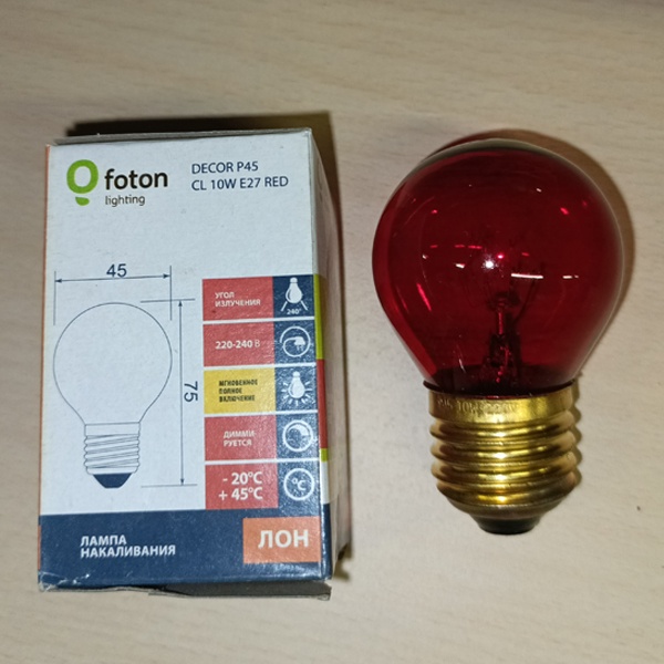 Декоративная лампа DECOR P45 мощностью 10 Вт, экономичная в эксплуатации, благодаря напылению, создает необычные цветовые гаммы освещения помещения, великолепно дополняет декоративные светильники. Лампа DECOR P45 представлена в цветах: синий, белый прозрачный, белый матовый, зеленый, красный, желтый. Применяется в интерьере для декоративного освещения, дизайнерской подсветки помещений ресторанов, кафе, также может использоваться в жилых помещениях.