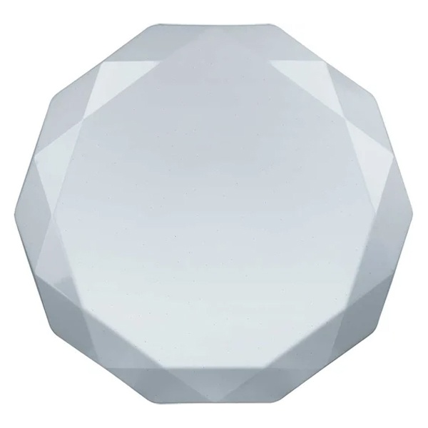 Корпус изделия выполнен из качественного белого пластика, устойчивого к пожелтению, выцветанию и механическим воздействиям. Декоративная фактура рассеивателя с алмазным эффектом не только придает светильнику изысканный внешний вид, но и способствует более мягкому и рассеянному светораспределению, что особенно актуально для жилых помещений. Класс защиты IP20 делает устройство пригодным для эксплуатации в сухих помещениях.